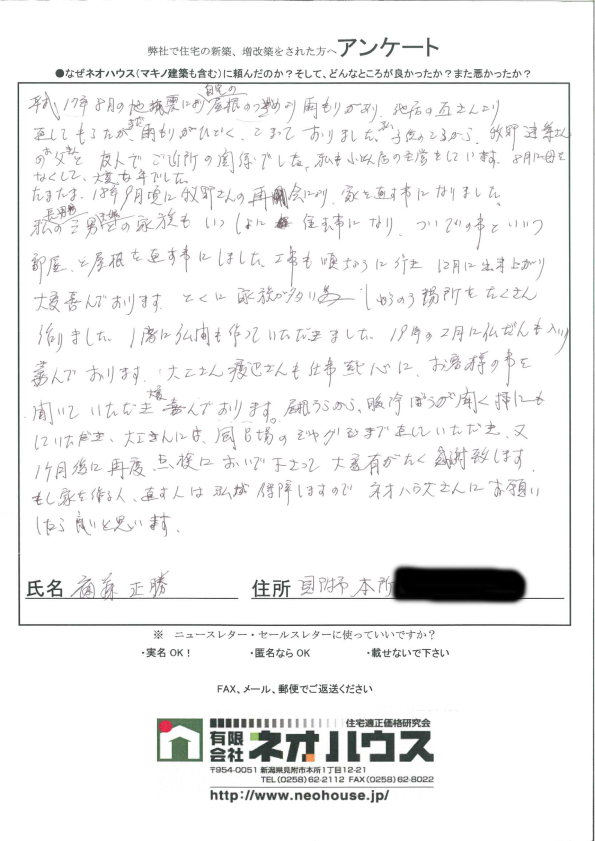 もし家を造る人、直す人は私が保障しますのでネオハウスさんにお願いしたら良いと思います。